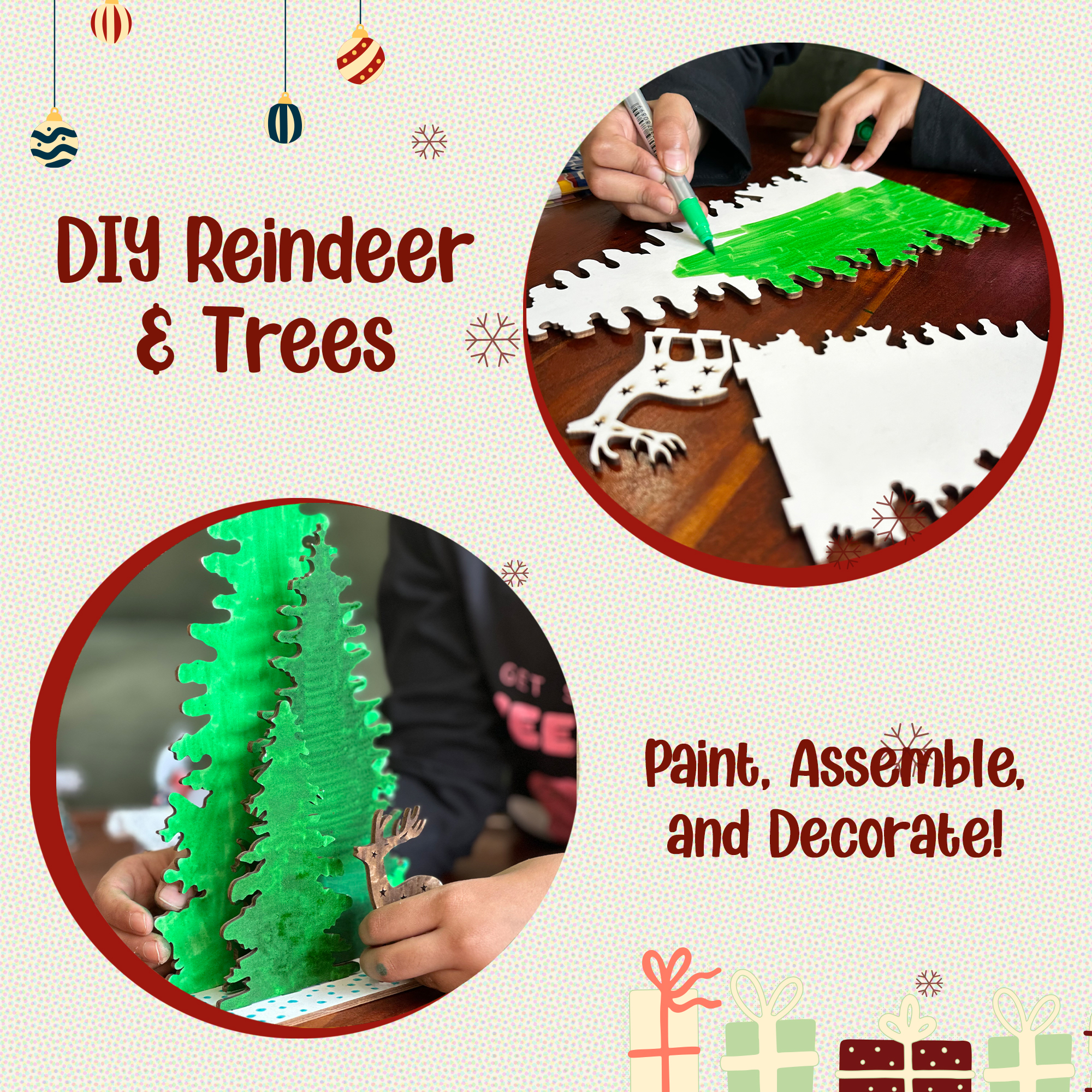 4. DIY Reindeer Craft: No wonderland is complete without pine trees and reindeer! Engage in a captivating DIY activity as you paint, assemble, and place reindeer and trees to add the perfect finishing touch to your Christmas masterpiece.